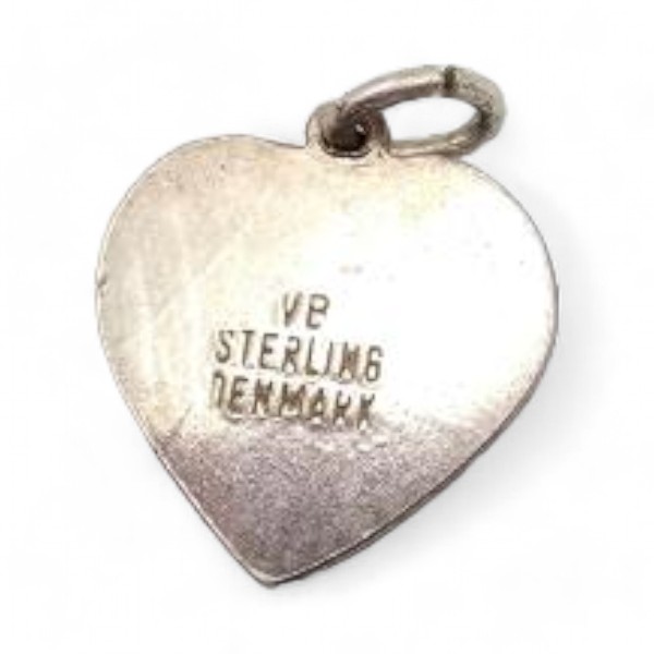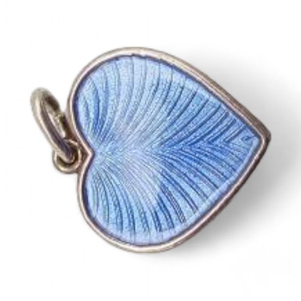 Denmark VB Volmer Bahners Guilloche Enamel Sterling Silver Blue Heart Pendant 1.8 G