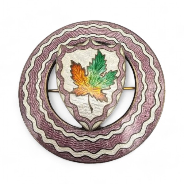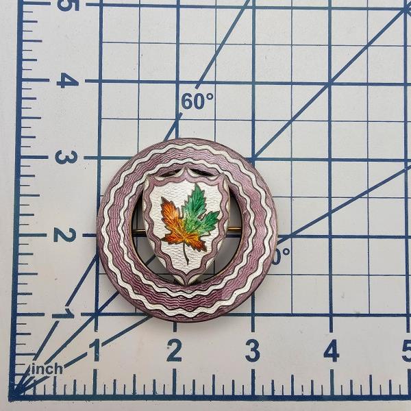 Huge Vintage Cloisonne Enamel Sterling Silver Purple Maple Leaf C Clasp Brooch 35.8 G