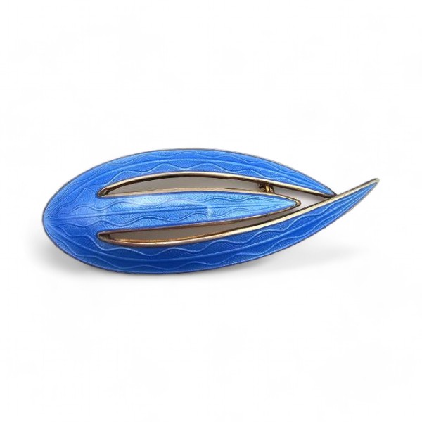 Norway Aksel Holmsen Guilloche Enamel Sterling Silver Blue Brooch 12.1 G