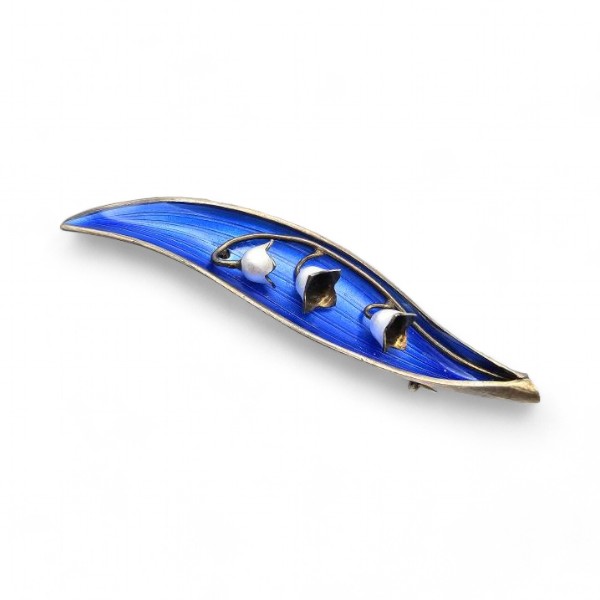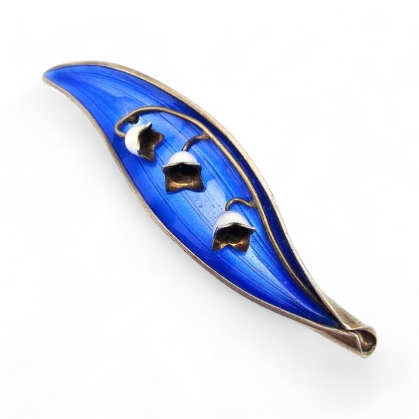 Norway Arne Nordlie Guilloche Enamel Sterling Silver Lily Of the Valley Brooch 12.7 G