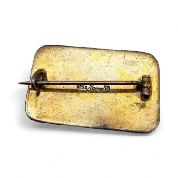 Norway Aksel Holmsen Guilloche Enamel Sterling Silver Winter Reindeer Scene Brooch 8.3 G