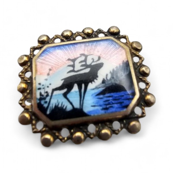 Norway Arne Nordlie Guilloche Enamel Sterling Silver Deer Scene Brooch 3.2 G