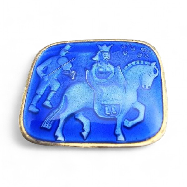 Norway T N.M Thune Guilloche Enamel Sterling Silver Blue Victorian Scene Brooch 6.9 G