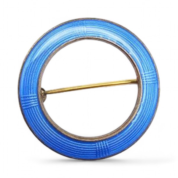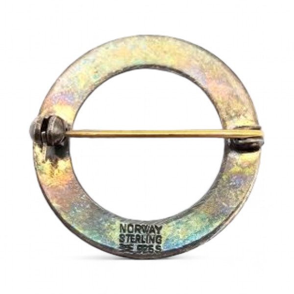 Norway Aksel Holmsen Guilloche Enamel Sterling Silver Circle Brooch 4.5 G