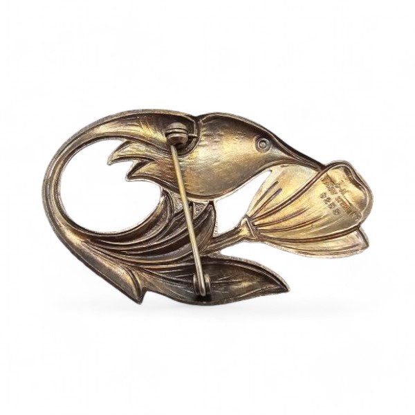 Norway DA David Andersen Guilloche Enamel Sterling Silver Bird Brooch 9.8 G