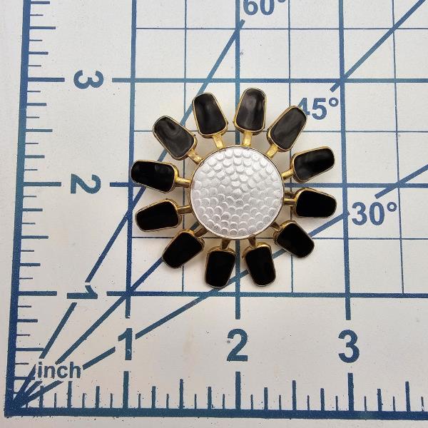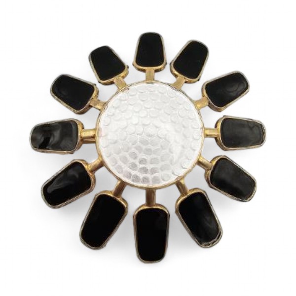 Norway Aksel Holmsen Guilloche Enamel Sterling Silver White and Black Mid Century Brooch 13.7 G
