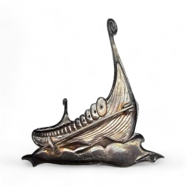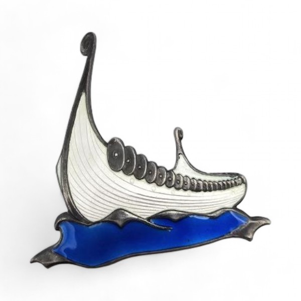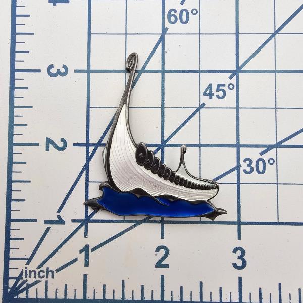 Scandinavian Guilloche Enamel Sterling Silver Viking Ship Brooch 7.1 G
