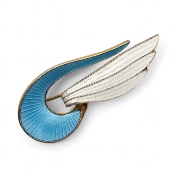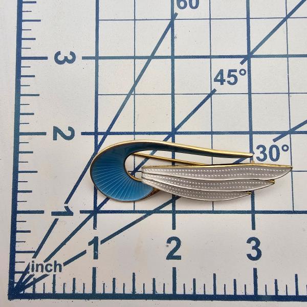 Norway Aksel Holmsen Guilloche Enamel Sterling Silver Blue and White Brooch 10.7 G