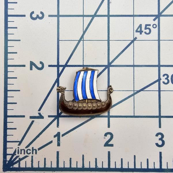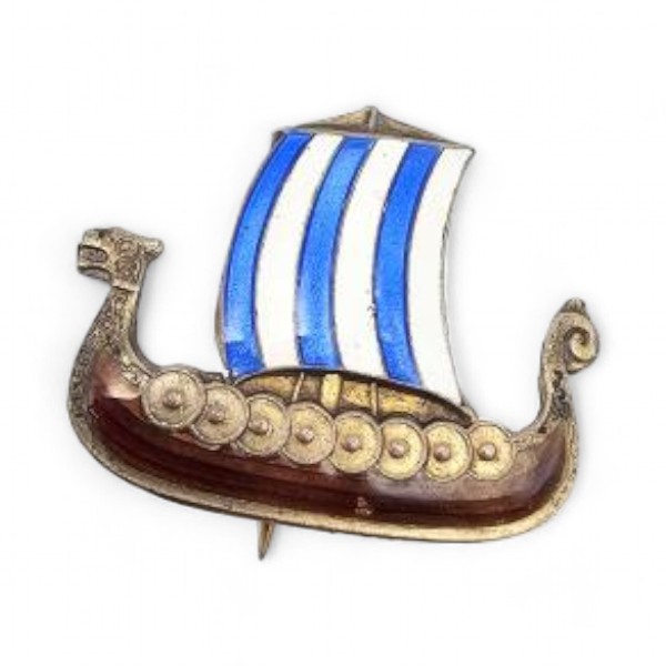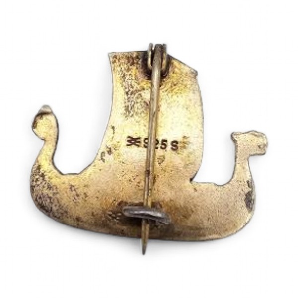 Norway Aksel Holmsen Guilloche Enamel Sterling Silver Viking Ship Brooch 4.3 G