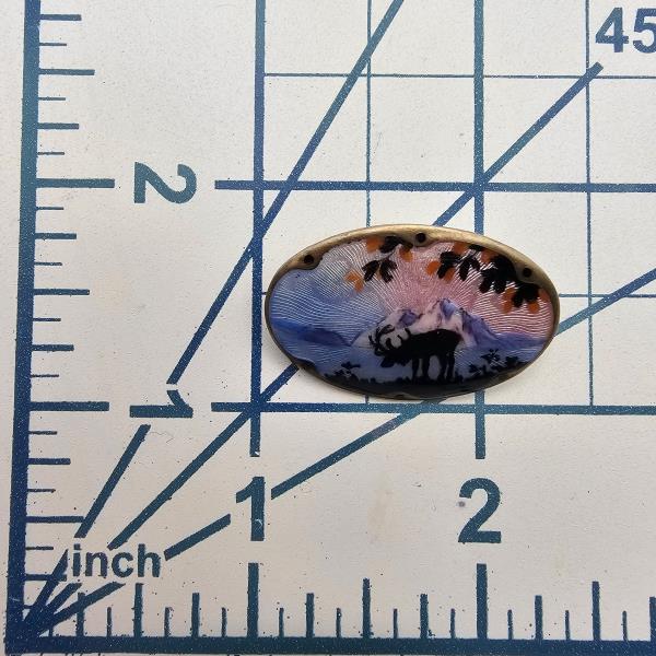 Norway Gustay Hellstrom Guilloche Enamel Sterling Silver Moose Scene Brooch 6.2 G