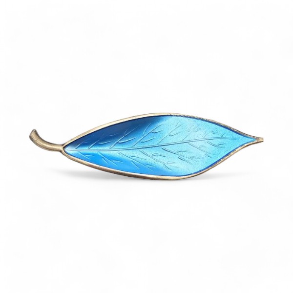 Norway DA David Andersen Guilloche Enamel Sterling Silver Blue Leaf Brooch 7.7 G