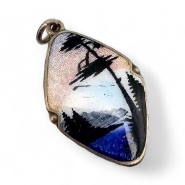 Norway XOX H.C. Ostren A/S Guilloche Enamel Sterling Silver Beach Theme Pendant 4.4 G