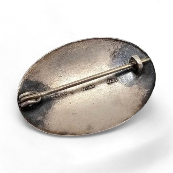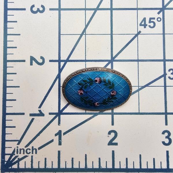 Vintage JA & S Guilloche Enamel Sterling Silver Blue Floral Brooch 6.3 G