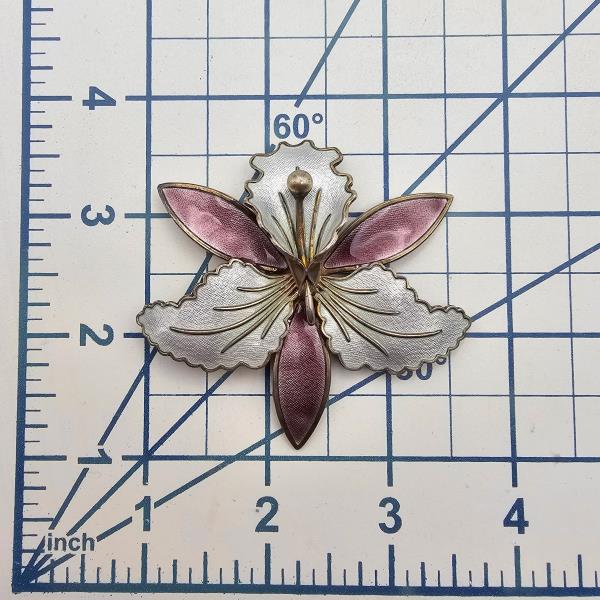 Norway Aksel Holmsen Guilloche Enamel Sterling Silver Purple Iris Flower Brooch 26 G