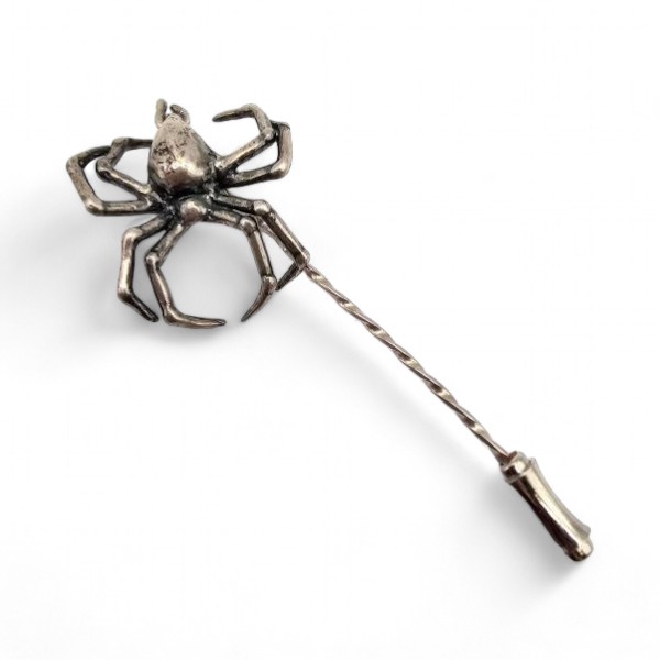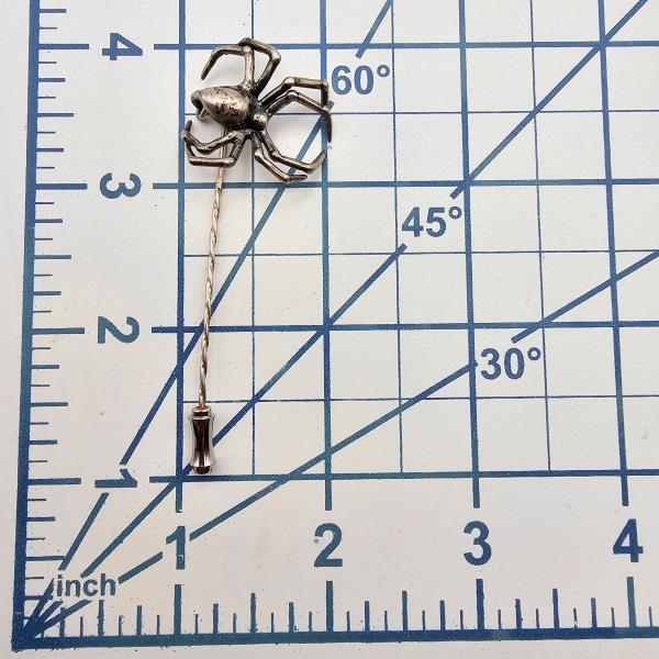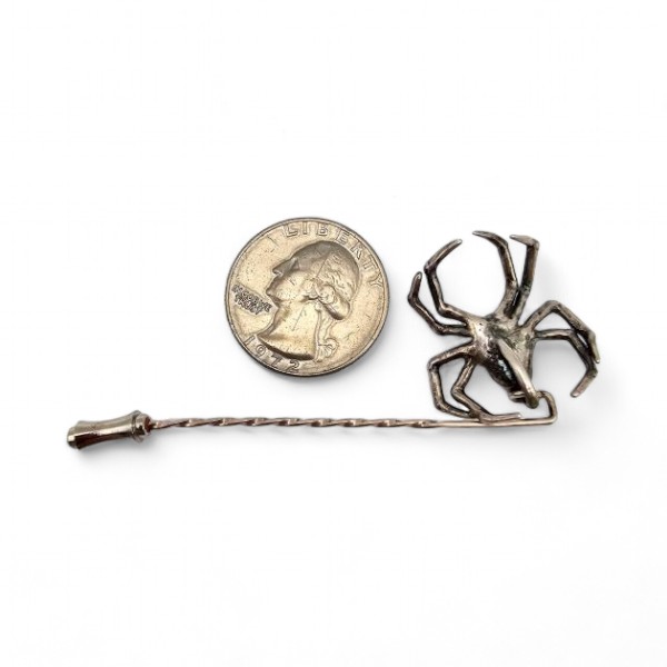 “MM” Sterling Silver Spider Dangle Lapel Stick Pin 6.4