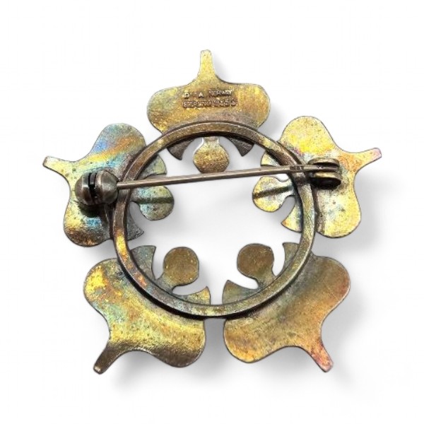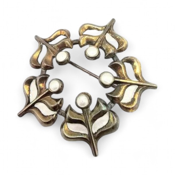 Norway DA David Andersen Guilloche Enamel Sterling Silver White Brooch 10.5 G