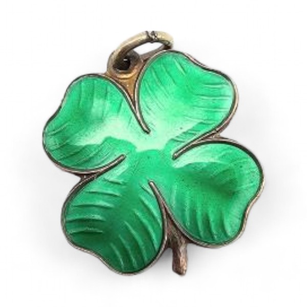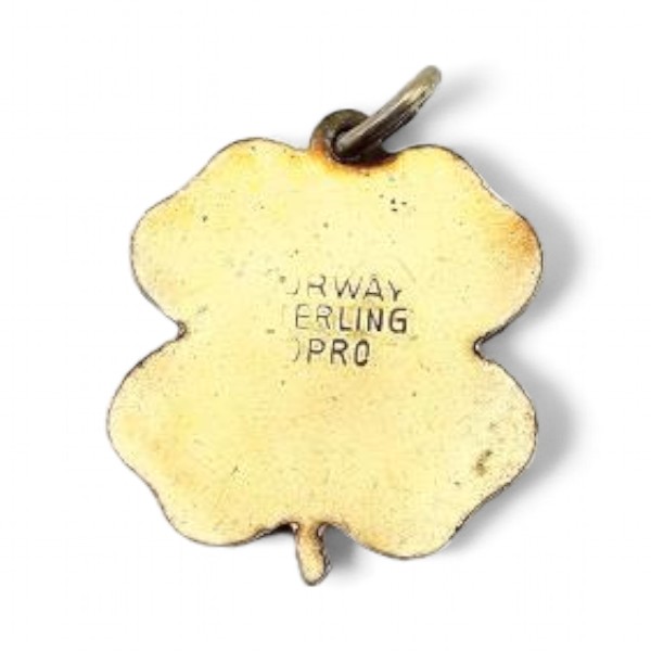 Norway OPRO Produkter Guilloche Enamel Sterling Silver Green 4 Leaf Clover Pendant 2.7 G
