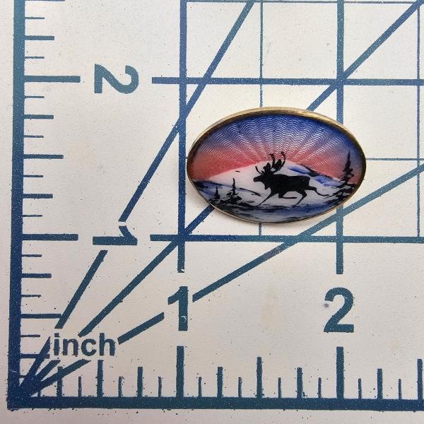 Norway O.F. Hjortdahl Guilloche Enamel Sterling Silver Moose Scene Brooch 5.1 G