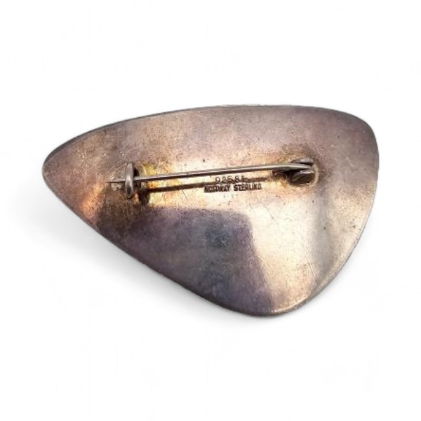 Norway Knut Andreas Rasmussen Guilloche Enamel Sterling Silver Green Brooch 10.9 G