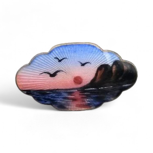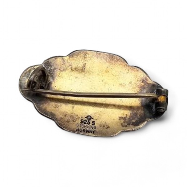 Norway O.F. Hjortdahl Guilloche Enamel Sterling Silver Ocean Scene Scalloped Brooch 5.3 G