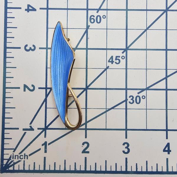 Norway Aksel Holmsen Guilloche Enamel Sterling Silver Blue Leaf Brooch 10 G