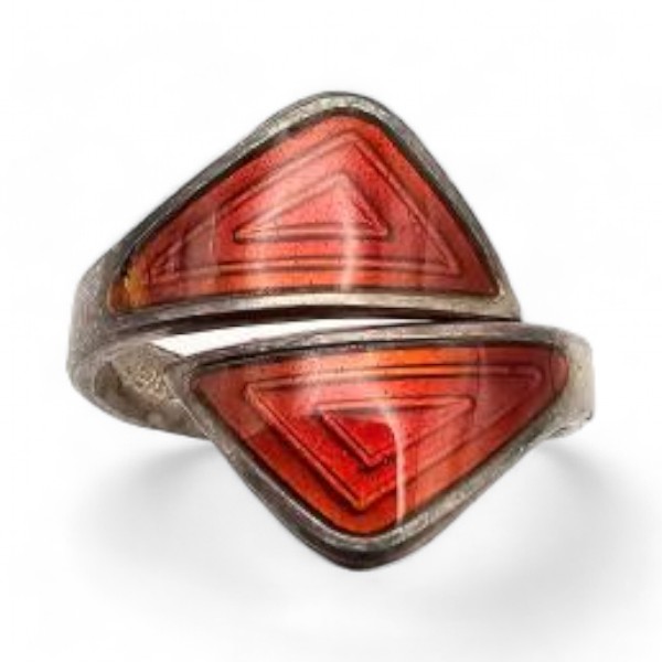 Norway Aksel Holmsen Guilloche Enamel Sterling Silver Red Ring Sz. 5.5, 3 G