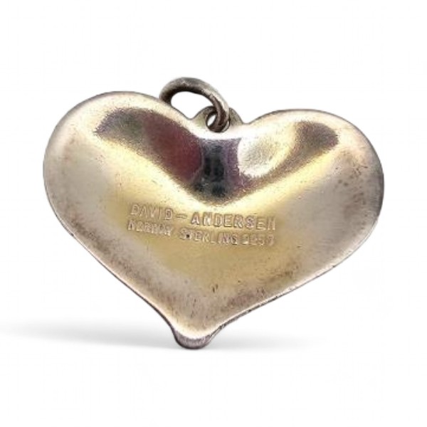 Norway DA David Andersen Guilloche Enamel Sterling Silver White Heart Pendant 6.3 G