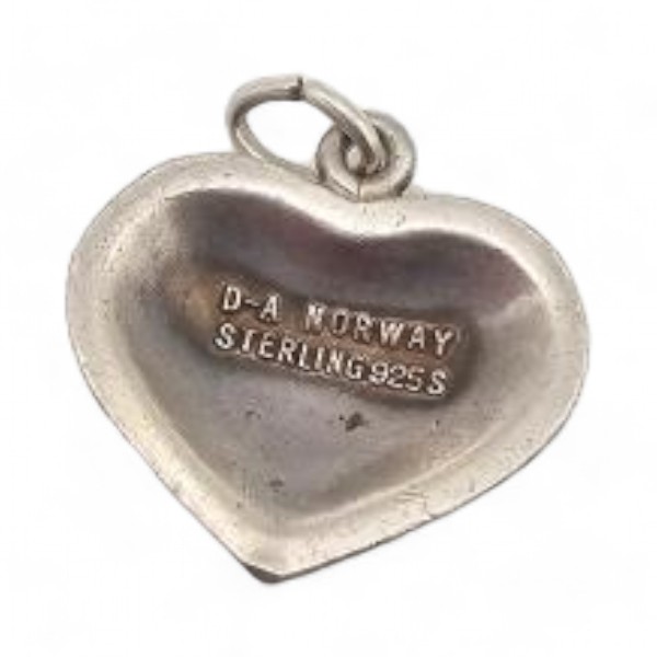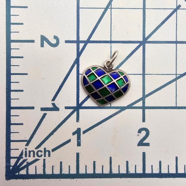 Norway DA David Andersen Guilloche Enamel Sterling Silver Blue and Green Heart Pendant 3.9 G
