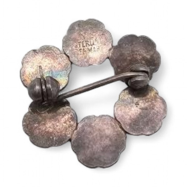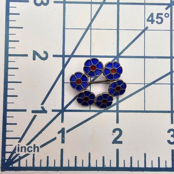 Denmark Volmer Bahners Blue Floral Circle Brooch 3.3 G