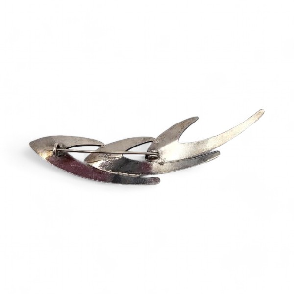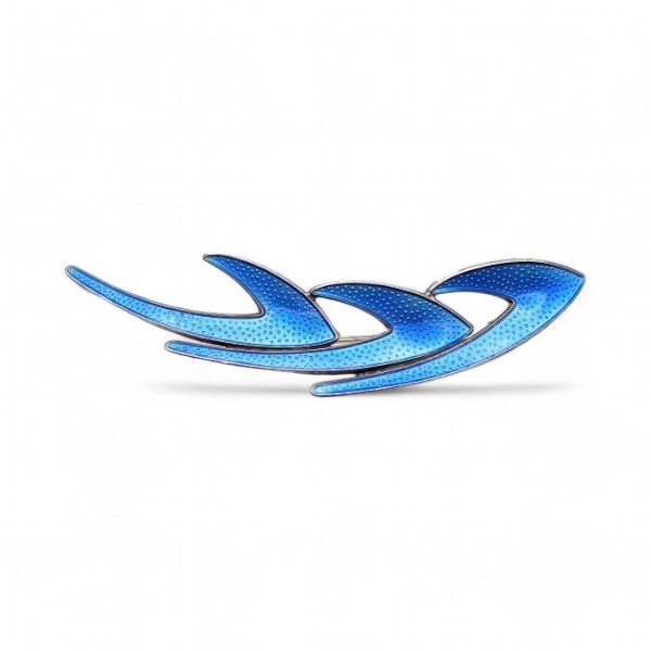 Norway KAR Knut Andreas Rasmussen Guilloche Enamel Sterling Silver Blue Leaf Brooch 8.4 G