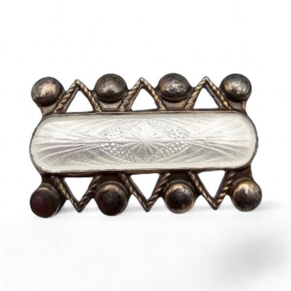 Norway Einar Modahl Guilloche Enamel Sterling Silver White Brooch 2.7 G