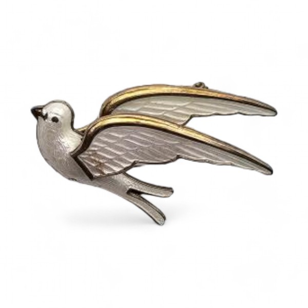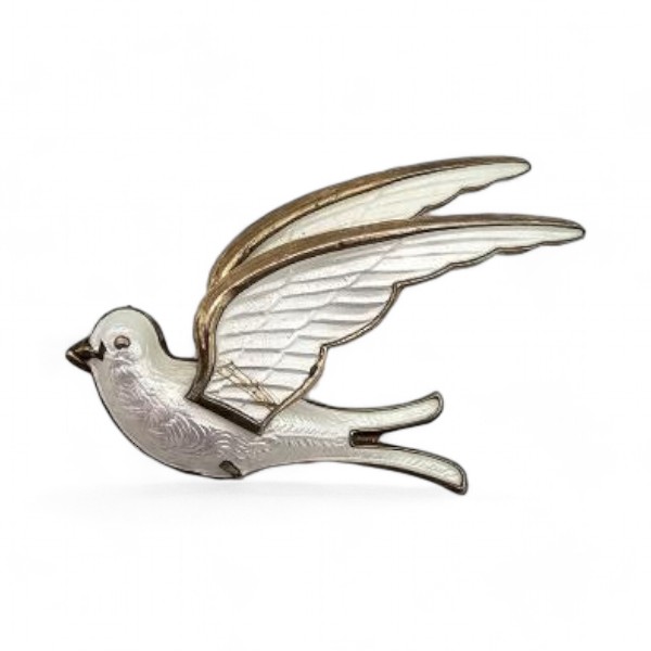Norway Bernard Meldahl Guilloche Enamel Sterling Silver White Bird Brooch 5.8G