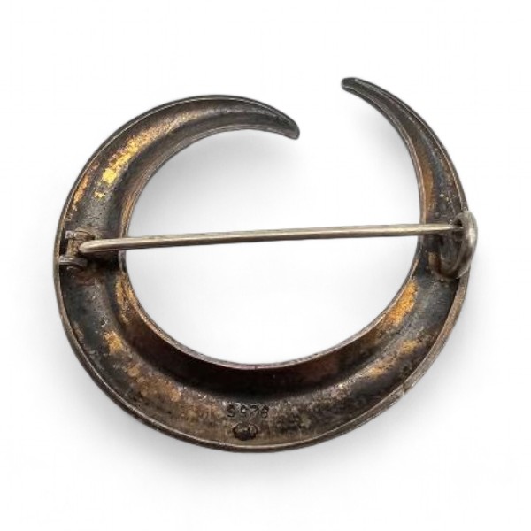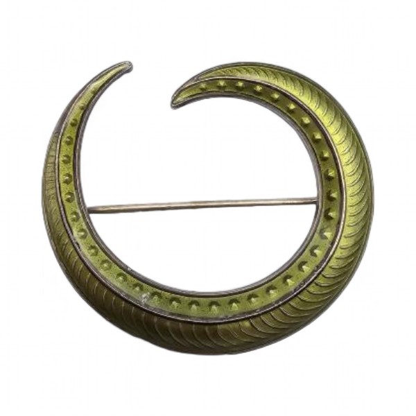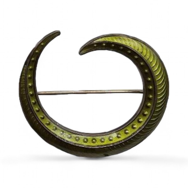 Norway E Elvik & Co. A/S Guilloche Enamel Sterling Silver Olive Green Swirl Brooch 4.9 G