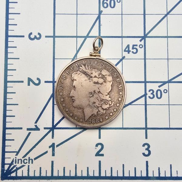 1884 Morgan 90% Silver Dollar Sterling Silver Border Pendant 28 G