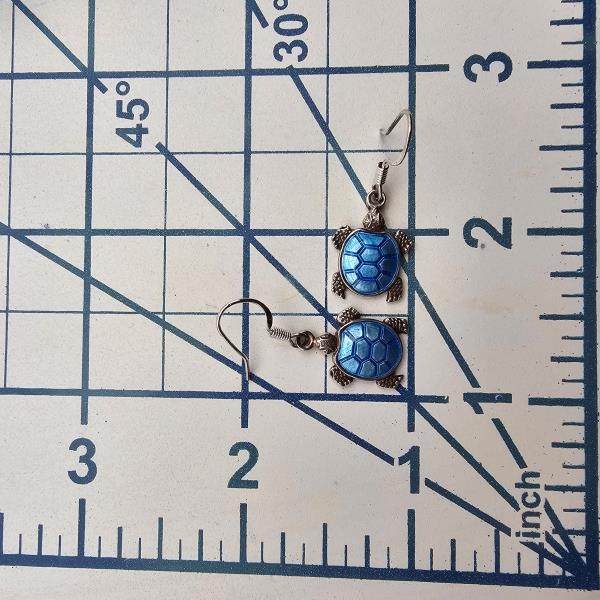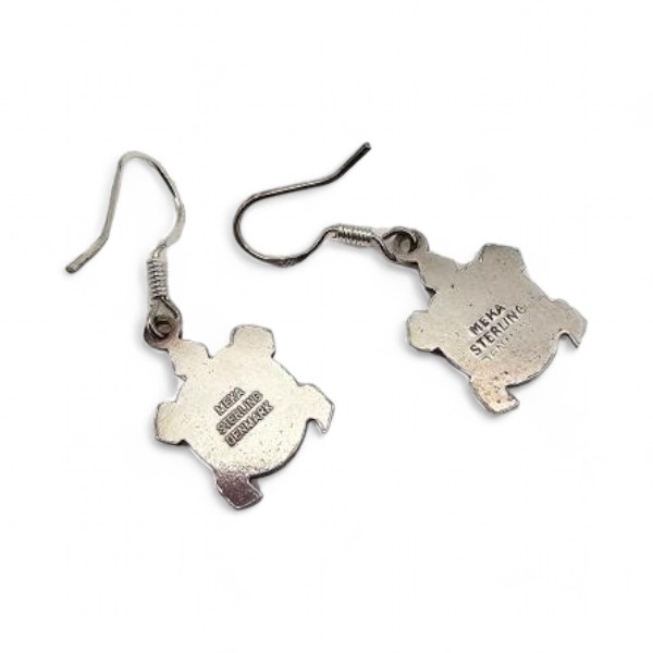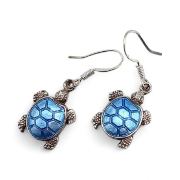 Denmark MEKA Guilloche Enamel Sterling Silver Blue Turtle Drop Dangle Earrings 3.8 G