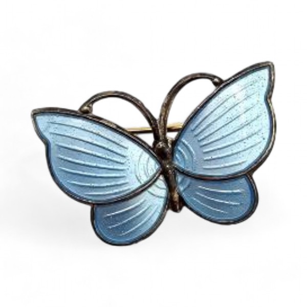 Denmark Jemax Guilloche Enamel Sterling Silver Butterfly Brooch 3.8 G