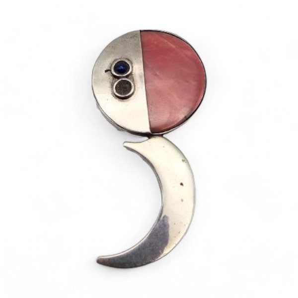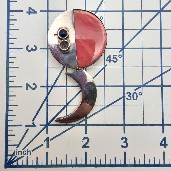 Matte Agate Lapis Sterling Silver Modernist Pendant 20 G As Is missing one stone