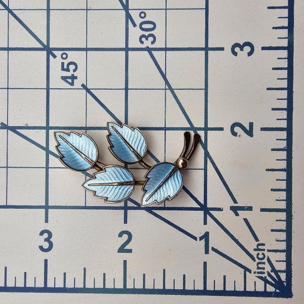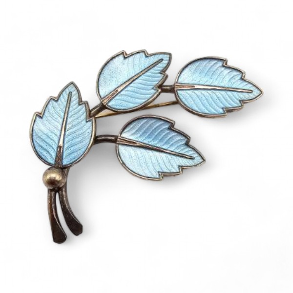 Denmark Jemax Guilloche Enamel Sterling Silver Blue Leaf Brooch 6.8 G