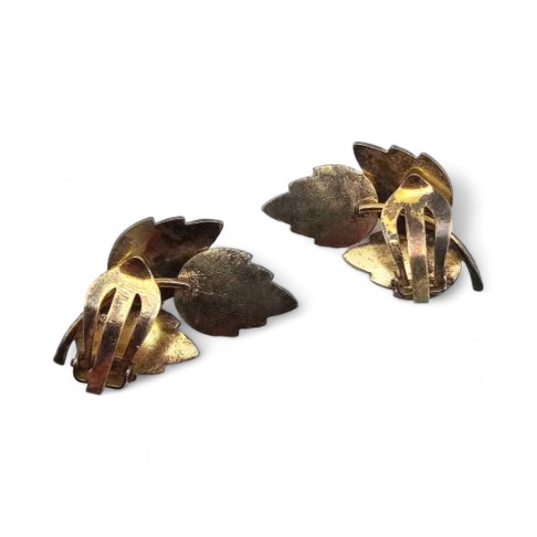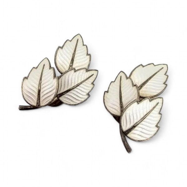 Denmark Jemax Guilloche Enamel Sterling Silver White Leaf Earrings 7 G
