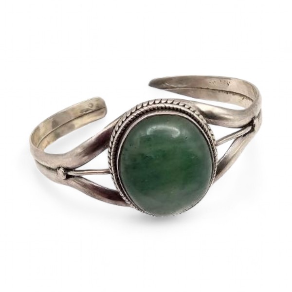 Aventurine Sterling Silver Open Band Cuff Bracelet 25.6 G