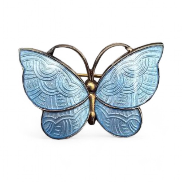 Denmark Jemax Guilloche Enamel Sterling Silver Blue Butterfly Brooch 4.8 G