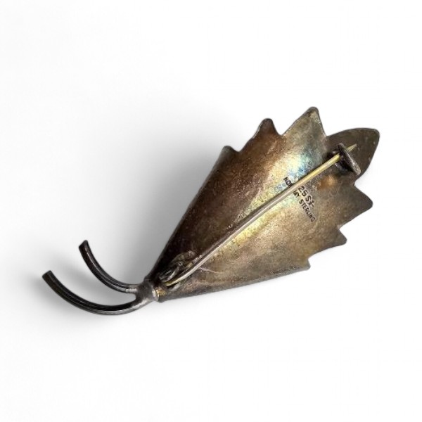 Norway Knut Andreas Rasmussen Guilloche Enamel Sterling Silver White Flower Brooch 10.7 G