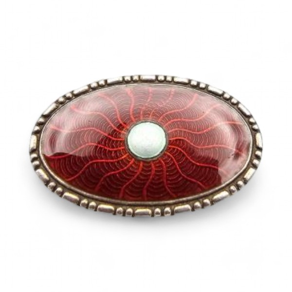 Norway Marius Hammer Guilloche Enamel Sterling Silver Red Brooch 3.8 G