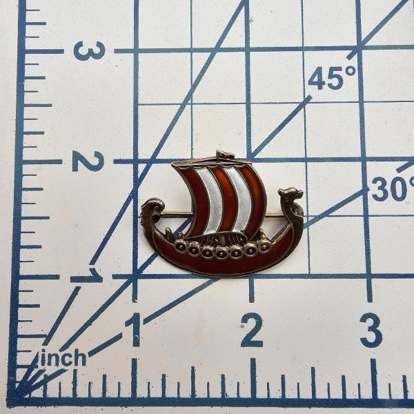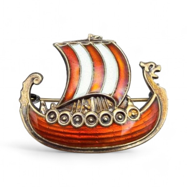Norway H Ivar T Holth Guilloche Enamel Sterling Silver Viking Ship Brooch 4.9 G
