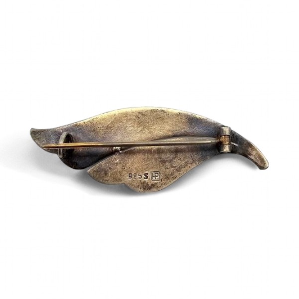 HP Guilloche Enamel Sterling Silver White Leaf Brooch 6 G