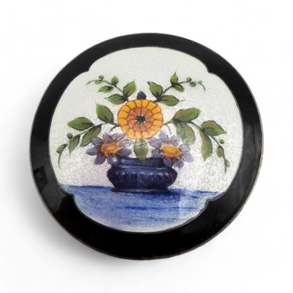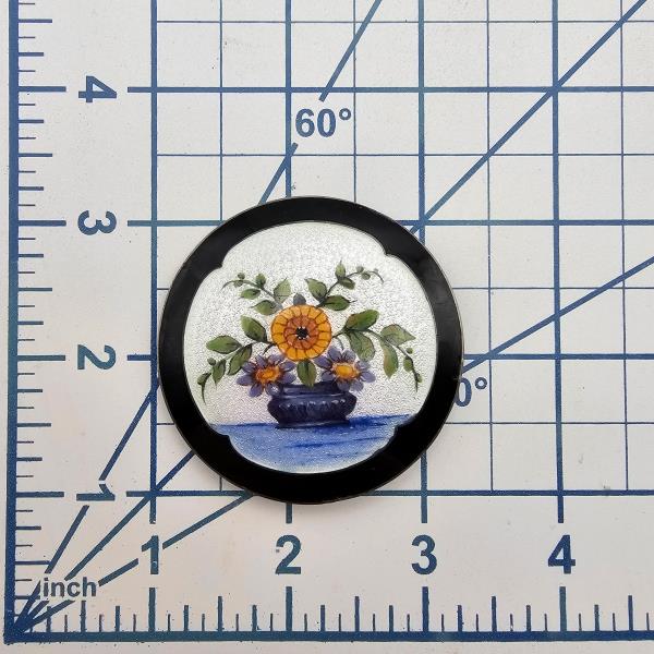 Large Vintage Clement Berg Guilloche Enamel Sterling Silver Floral Brooch 30.8 G