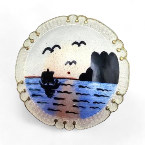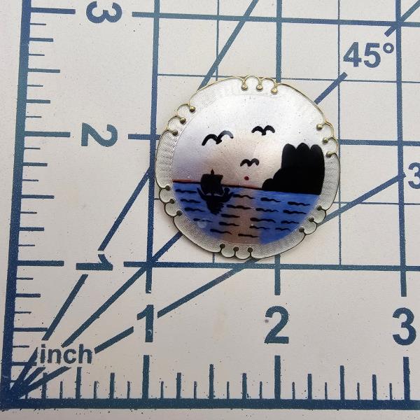 Norway H Ivar T Holth Guilloche Enamel Sterling Silver Ocean Scene Brooch 11 G