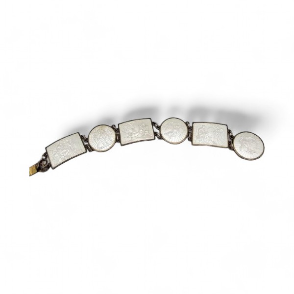 Denmark MEKA Guilloche Enamel Sterling Silver White Thorvaldsen Gauymedee Jupiter's Eagle Bracelet 39.4 G