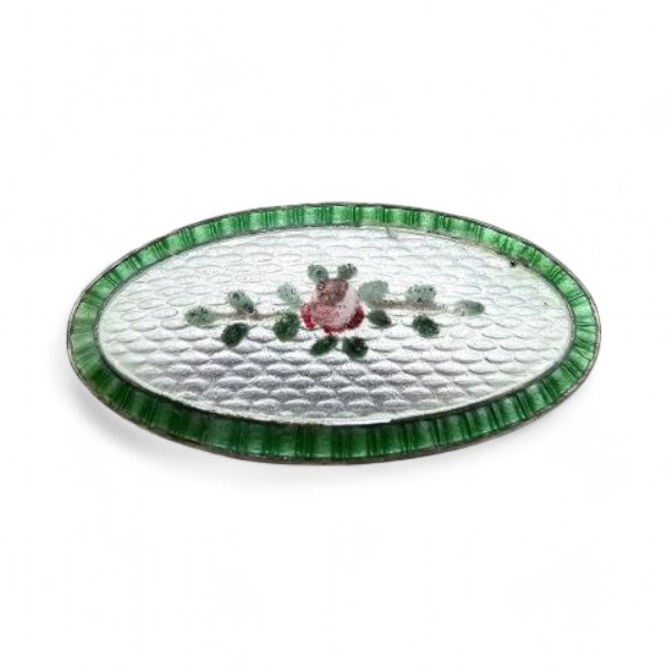 JA & S Guilloche Enamel Sterling Silver Floral Brooch 3.1 G