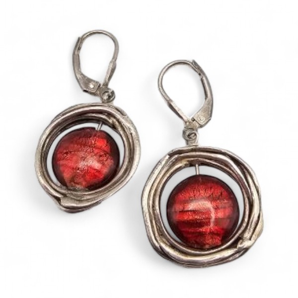 Rex Art Glass Sterling Silver Drop Dangle Earrings 8.7 G